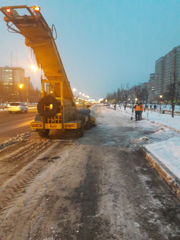 Они осуществляли обработку проезжей части песко-соляной смесью (492 тонны за ночь), подметание и вывоз снега (455 кубометров).