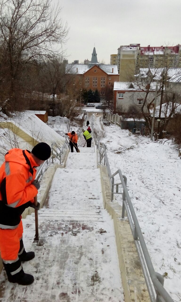 Так сотрудники районного комбината благоустройства очищают от наледи нагорные лестницы по улицам Севастьяновский съезд и Чернышевский бугор; по заявкам жителей производят обрезку кустарника по ул. Острогожская в целях обеспечения нормального подхода к остановкам общественного транспорта. Выполняют противогололедные мероприятия на тротуарной части спуска ул. Грамши. На ул. Кирова организован вывоз порубочных остатков после санитарной обрезки деревьев.