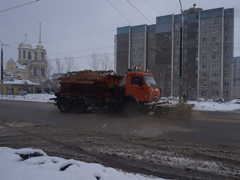 Велась просыпка улиц района песко-соляной смесью, в том числе, и улиц микрорайона Подгорное.