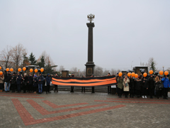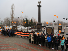 В памятной акции приняли участие учащиеся средних учебных заведений Левобережного района города Воронежа. Школьники, выстроились перед стеллой, и одновременно запустили в небо полсотни шаров черного и оранжевого цвета.