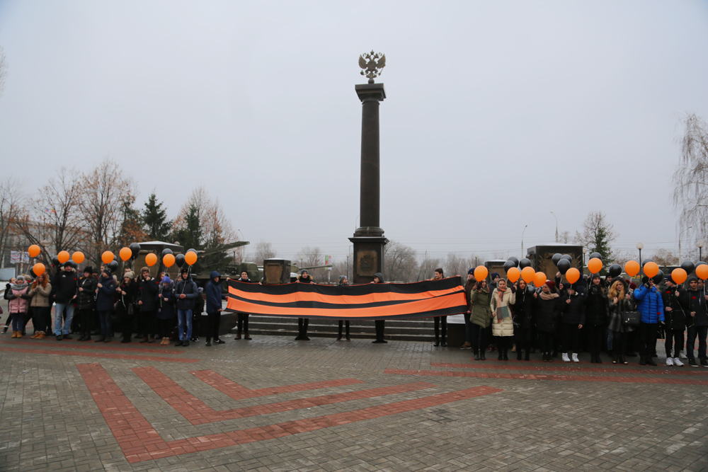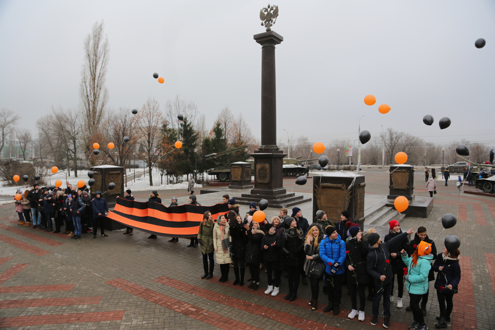 В памятной акции приняли участие учащиеся средних учебных заведений Левобережного района города Воронежа. Школьники, выстроились перед стеллой, и одновременно запустили в небо полсотни шаров черного и оранжевого цвета.