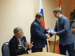 В управу были приглашены Герой Советского Союза Николай Малышев, Герой России Юрий Анохин, Герой Социалистического труда Николай Чернышов. Именно эти люди, вошедшие в историю нашего города и страны, вручали на торжестве памятные знаки «Воронежцу – воину-интернационалисту» участникам локальных войн и конфликтов, выполнявших свой интернациональный долг за пределами страны.
