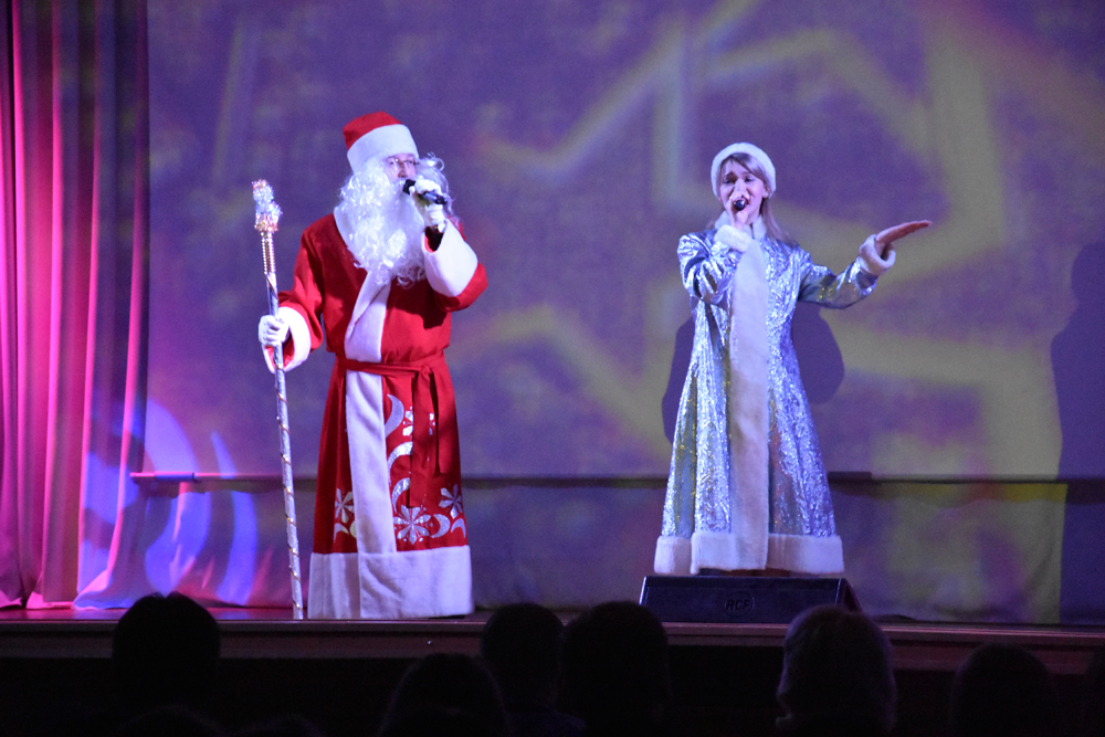 В этот праздничный день зрителей радовали лучшие номера районных и городских исполнителей, творческих коллективов и ансамблей. В основе номеров лежала тематика песен и фильмов Советской эпохи. Гости услышали легендарные и дорогие сердцу песни «Где-то на белом свете», «Пять минут», «Разговор с счастьем» и «Чертово колесо». Вторая половина концерта перенесла зрителей уже в современную эпоху – группа «Аллегрия» продемонстрировала уникальное световое шоу, а завершило концерт выступление Деда Мороза, Снегурочки под композицию «Новогодние игрушки» в исполнении детского вокального коллектива центра развития творчества детей и юношества «Крылатый».