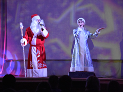 Дети и взрослые очень тепло встречали актеров, зал все время взрывали радостный смех и аплодисменты. По завершении праздника все дети получили из рук Деда Мороза и Снегурочки сладкие подарки, а также сделали памятные фото на память.