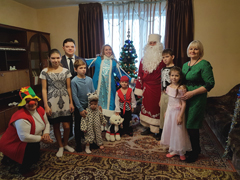 В семье Елены и Алексея Бакутиных растут семеро детей. И здесь руководителя управы Алексея Медведева с новогодней компанией ждал теплый прием, хоровод возле елки, замечательные стихи, игра на флейте и трубе, а так же дружеское общение.