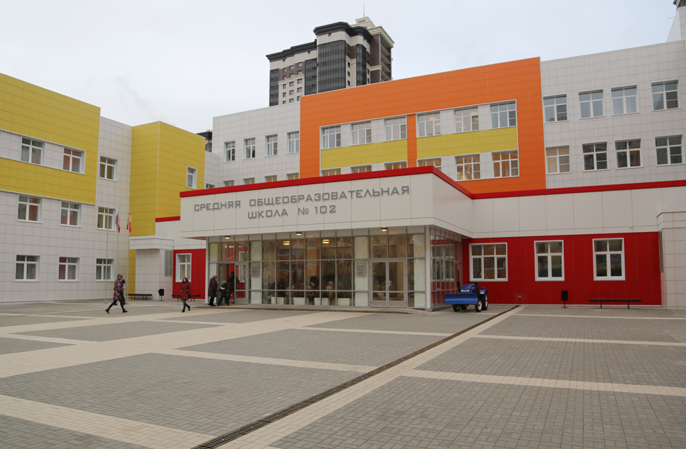 – Проектная мощность здания – 1224 места. В настоящий момент в школу уже зачислены 1086 детей. Образовательное учреждение пользуется высокой востребованностью, ведь оно появилось на динамично развивающейся территории трех микрорайонов с числом жителей, превышающим 30 тысяч человек. В этом году мы не принимали учащихся 9 и 11-х классов, потому что не успеем достойно подготовить их к сдаче итоговых экзаменов. Тем не менее, полностью сформирован педагогический состав, который был собран по крупицам – каждый учитель прошел конкурсный отбор, – отметил директор школы №102 Алексей Фактор.