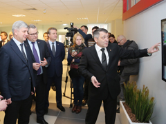 – На строительство здания было выделено более 660 миллионов из бюджетов всех уровней, еще 104 – на оснащение школы. Все помещения, открытые площадки, учебные пособия – соответствуют современным федеральным образовательным стандартам. Например, компьютеры у нас установлены на передвижной тележке, которую любой учитель может привозить в свой класс по мере необходимости. Для кабинетов естественных наук закуплены высокоточные приборы, фрезерными станками, швейными машинками, манекенами, приспособлениями для обучения моделированию и шитью оснащены мастерские для проведения уроков технологии. Три музея из двенадцати начали работу с сегодняшнего дня, – рассказал гостям Алексей Фактор.