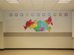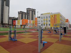 Для справки: В здании три корпуса: трех-четырехэтажный – учебный, двухэтажный –общественный и одноэтажный – спортивный, которые связаны между собой вестибюлем. У школы отдельная блочная автоматизированная котельная и две трансформаторных подстанции. Для занятий спортом оборудованы два спортивных зала, универсальная комплексная спортивная площадка, теннисный корт, комбинированная спортивная площадка для занятий баскетболом, волейболом, бадминтоном, спортивное ядро с футбольным полем, сектором для прыжков и беговыми дорожками.