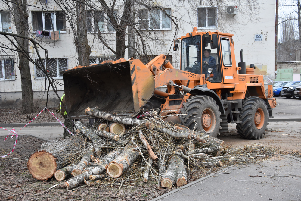 Бригада комбината благоустройства, состоящая из работников ручной уборки, самосвалов и погрузчика, продолжает работы по вывозу порубочных остатков с участка вокруг дома № 157 по Ленинскому проспекту.