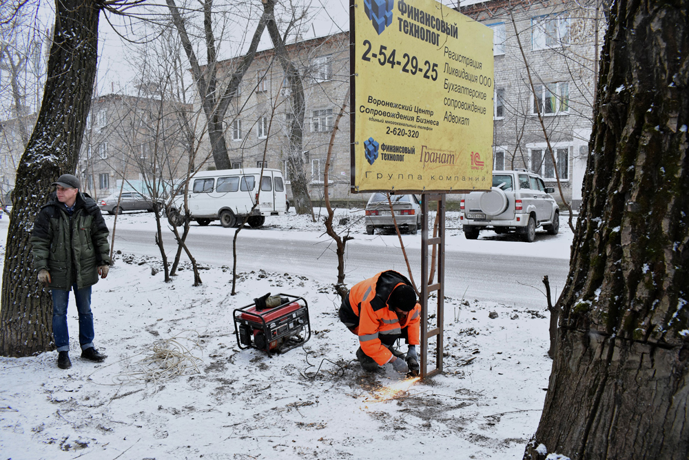 На территории Ленинского района сотрудники управы и районного Комбината благоустройства провели очередной рейд по ликвидации незаконной рекламы.