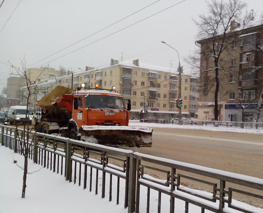 За ночь было вывезено 1068 кубометров снега, израсходовано на посыпку – 172 тонны пескосмеси.