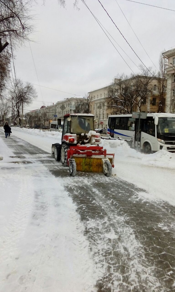 27 и 28 января с улиц вывезено порядка 3900 кубометров снега, израсходовано для обработки проезжей части и тротуаров около 800 тонн песко-смеси. Работы по вывозу снега велись на улицах Кольцовской, Комиссаржевской, Средне-Московской, Плехановской и проспекте Революции.