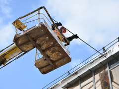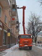 Работы проводились с привлечением двух автовышек.