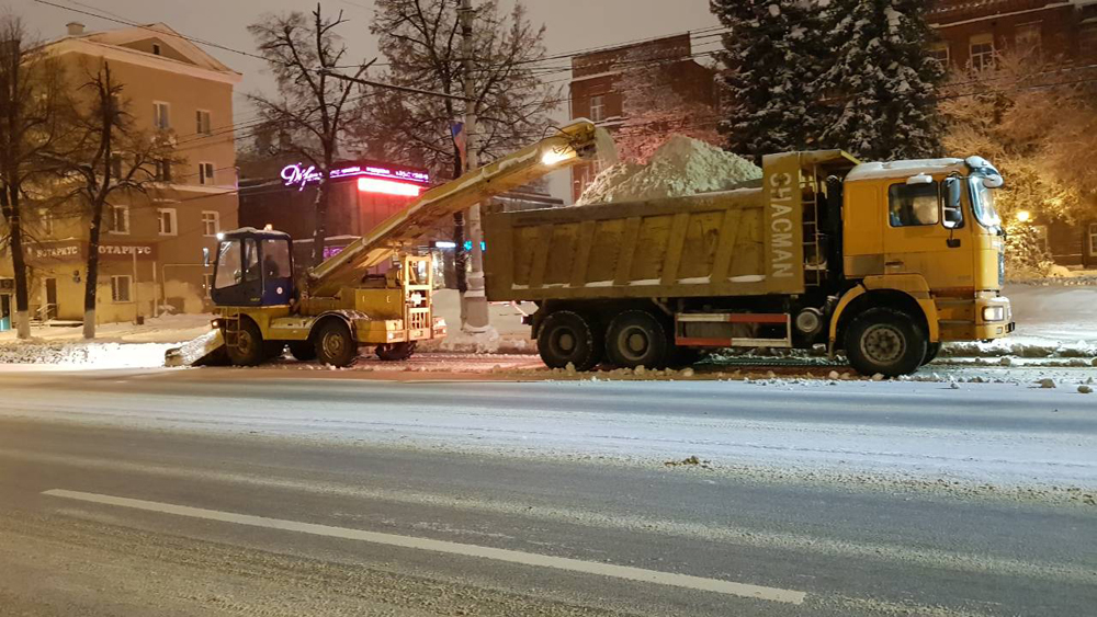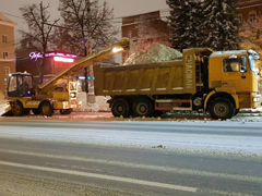 Прошедшей ночью 209 единиц коммунальной техники продолжали очистку города от наледи и снега.