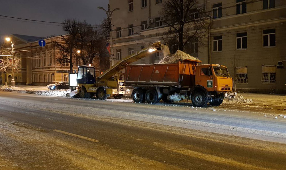 В Воронеже продолжается уборка улично-дорожной сети от снега и наледи
