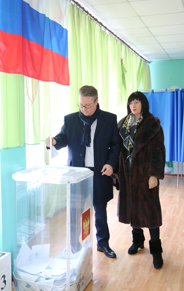 Свою личную гражданскую позицию Вадим Кстенин, голосовавший вместе с супругой, выразил на избирательном участке в школе №83.