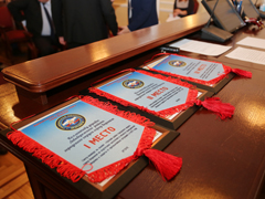 В начале планёрки Вадим Юрьевич наградил благодарственными письмами коллективы управ, победивших в смотре-конкурсе «Лучший район городского округа город Воронеж по подготовке населения в области гражданской обороны и защиты от чрезвычайных ситуаций».