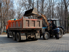 Районным комбинатом благоустройства проводилась уборка пескосмета с ул. Новосибирская, Ленинградская, Ленинский проспект, Димитрова, Брусилова, Лебедева, Чернавская дамба, ВОГРЕС.