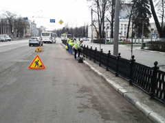 Работниками комбината благоустройства осуществляется уборка улично-дорожной сети. Особое внимание уделяется очистке прилотковой зоны, уборке пескосмета, вывозу порубочных остатков, мусора, окраске бордюрного камня.