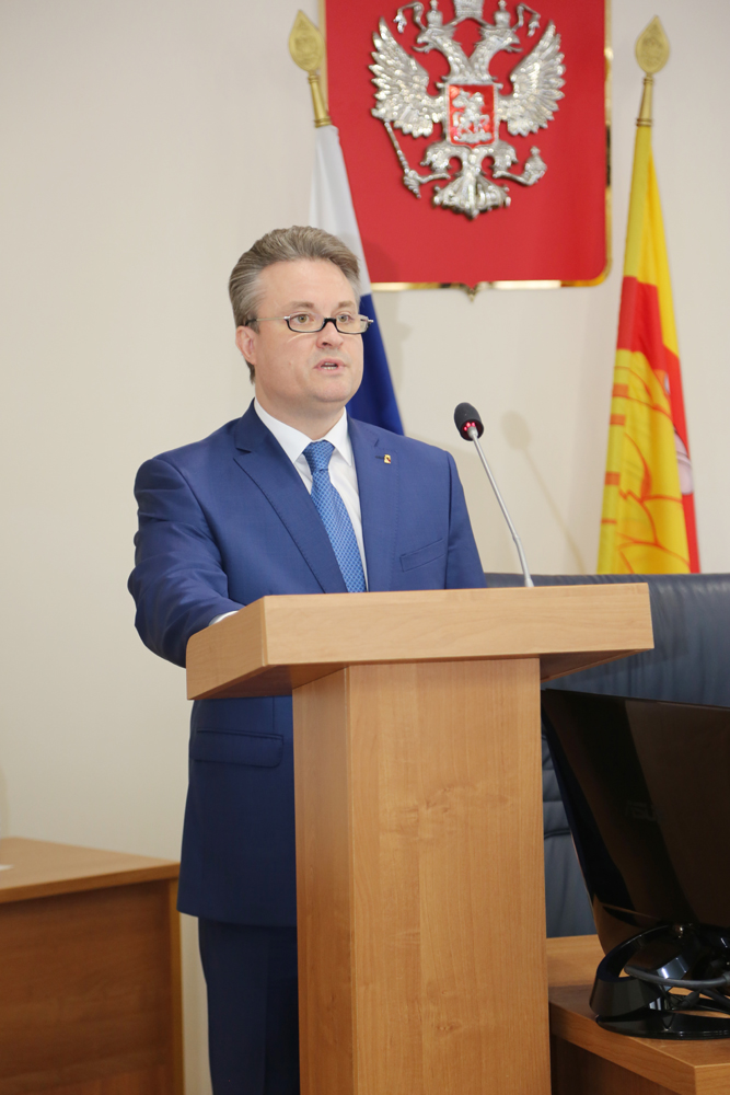 Председатель городского парламента Владимир Ходырев напомнил, что согласно решению №805-IV, которое было принято на предыдущем заседании, Вадим Юрьевич был впервые избран депутатами на должность главы городского округа.