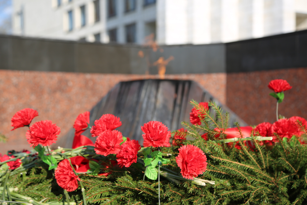 У стелы «Воронеж – город воинской славы» присутствующие почтили память погибших воинов и возложили цветы к Вечному огню.