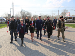 Здесь их приветствовали руководители управлений социального блока администрации – Любовь Кулакова и Андрей Харитонов, а также жители города: школьники, ветераны, представители общественных организаций и образовательных учреждений.