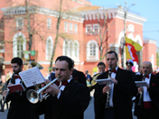 После этого участники демонстрации переместились в Кольцовский сквер, где артисты филармонии представили праздничную программу.