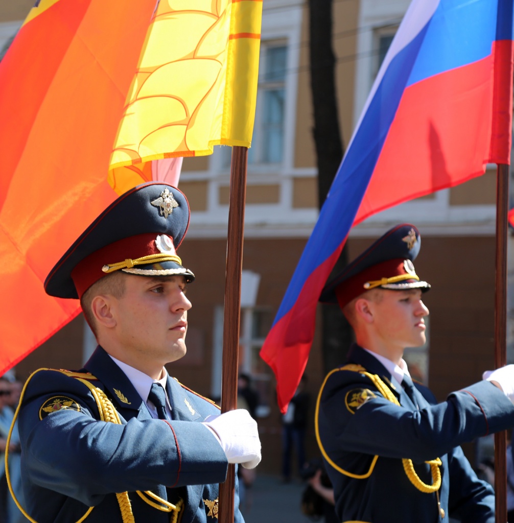 Колонну демонстрантов возглавили представители исполнительной и законодательной власти области и города – временно исполняющий обязанности заместителя губернатора Евгений Юрченко, председатель областной Думы Владимир Нетесов, главный федеральный инспектор по Воронежской области Александр Солодов, глава Воронежа Вадим Кстенин.