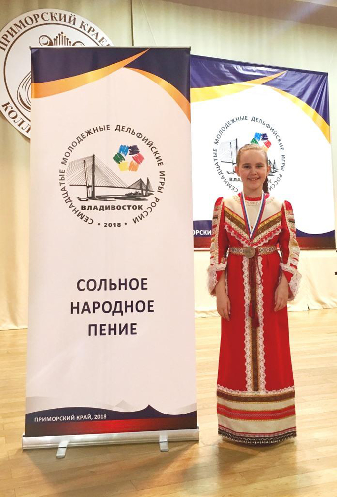 Екатерина успешно выступила в номинации «Сольное народное пение» (возрастная категория 10-13 лет), исполнив русские народные песни «Саратовские припевки» и «Вологодские припевки» с собственным аккомпанементом на балалайке (преподаватель Харитонов Константин Петрович), представив лучшие самобытные образцы народного музыкально-песенного творчества регионов России.