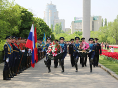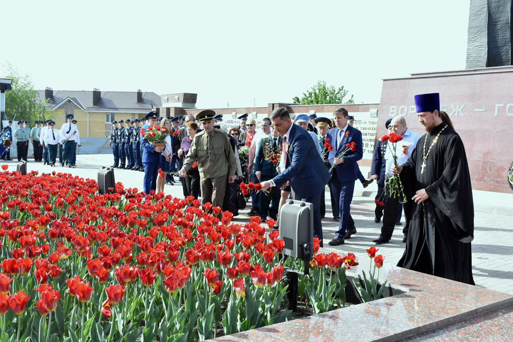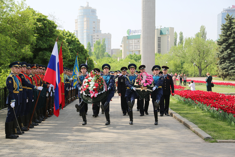 8 мая на мемориальном комплексе Чижовский плацдарм в честь Дня Победы прошла торжественная церемония отдания воинских почестей и возложение венков к памятнику воинам, погибшим в боях за Воронеж.