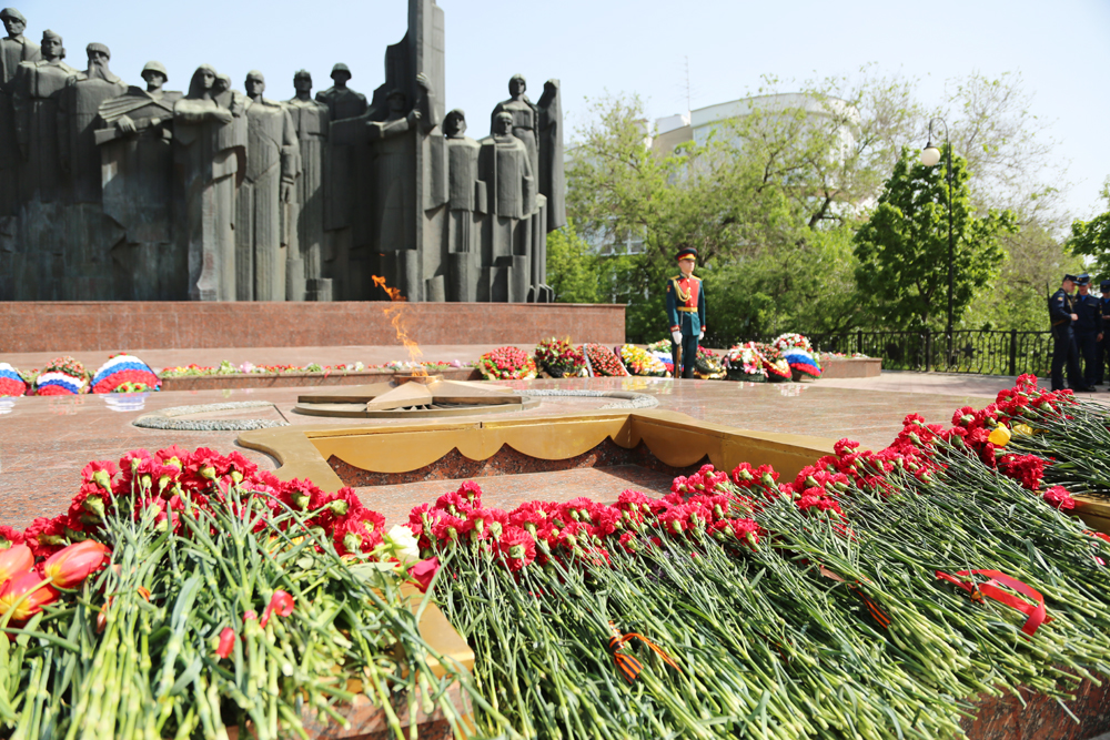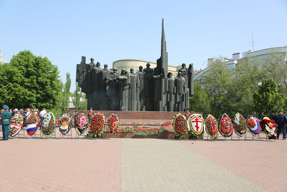 В Коминтерновском районе на мемориале Памятник Славы состоялась торжественная церемония возложения венков и цветов. Здесь покоится более 10 тысяч павших советских воинов.