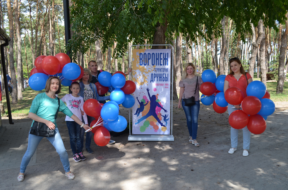 Управой Левобережного района была организована молодежная акция «Воронеж – территория дружбы». Гости мероприятия получили в подарок праздничные воздушные шары.