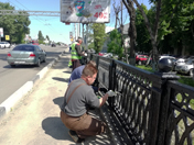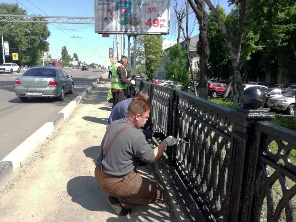 Основные виды работ по благоустройству на территории района – приведение в надлежащее состояние ограждений на Московском проспекте, удаление незаконной рекламы, покос травы. От объявлений и несанкционированной рекламы сотрудниками комбината благоустройства был очищен надземный пешеходный переход, расположенный у автовокзала, срезано более 70 незаконных выносных малых рекламных конструкций. Предприятия потребительского рынка и торговые объекты обновили и помыли свои витрины и витражные конструкции.