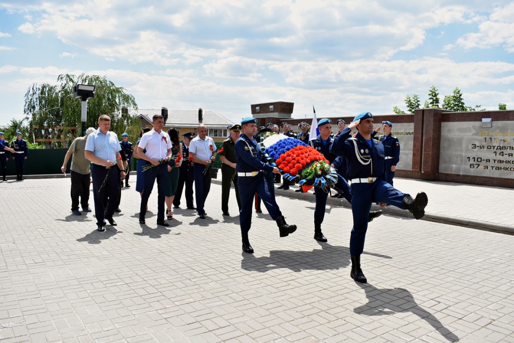 Почетный караул Военно-Воздушной Академии имени профессора Н.Е. Жуковского и Ю.А. Гагарина прошел торжественным маршем с отданием воинских почестей воинам, захороненным на Чижовском плацдарме.