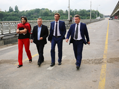 Вадим Кстенин заслушал доклад руководителя подрядной организации. 24 июля был выполнен весь объем работ на 14 деформационных швах – буквально за час до совещания завершилась шлифовка связующего покрытия последнего шва. Всего на двух сторонах Северного моста их 28, общая длина составляет 345 метров.