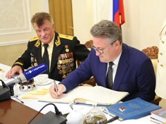 Руководитель общественной организации «Колыбель русского флота», Почетный гражданин Воронежа, контр-адмирал Николай Ермаков поблагодарил Вадима Кстенина за внимание к ветеранам, поддержку общественной организации и обратился к мэру с просьбой.