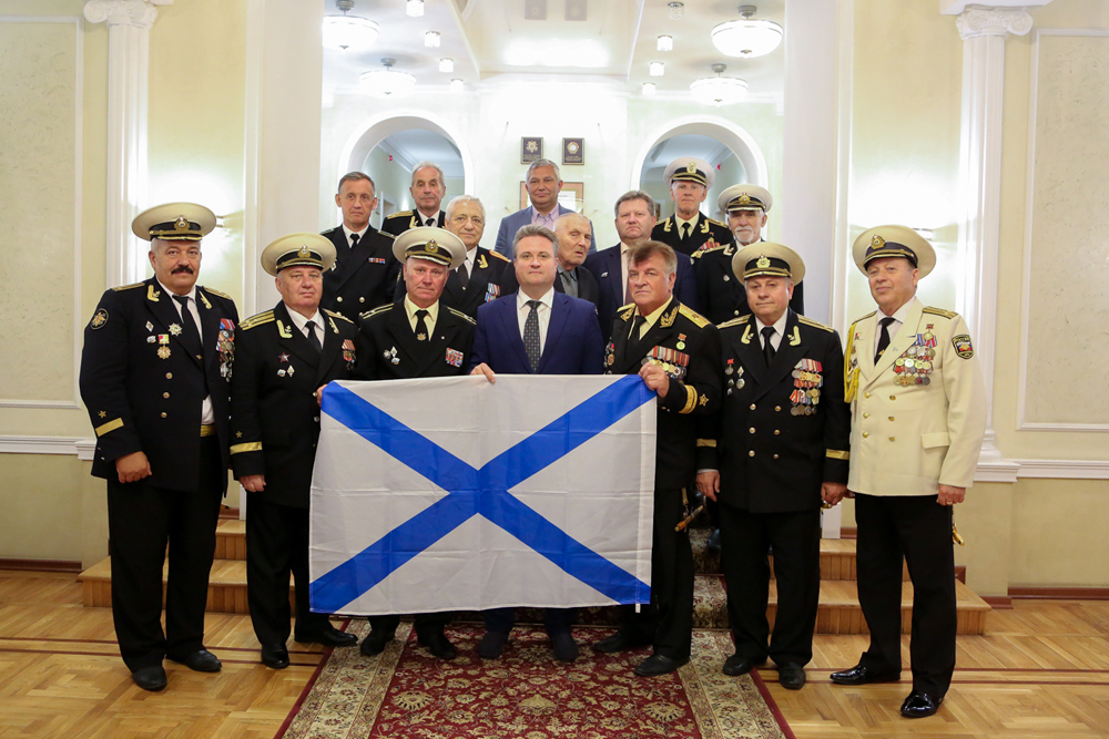 Николай Васильевич преподнес главе города тихоокеанскую тельняшку и Андреевский флаг, которому в этом году исполняется 320 лет. В свою очередь Вадим Кстенин пообещал, что профильные подразделения администрации города проработают вопрос об организации в следующем году торжеств, которые будут соответствовать статусу праздника, а также вручил ветеранам благодарственные письма за активную патриотическую работу и популяризацию истории и традиций Военно-морского флота.