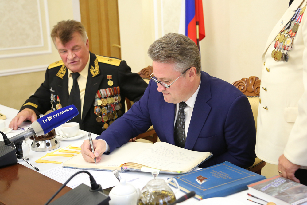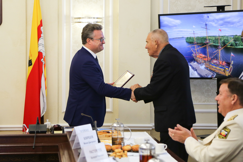 Руководитель общественной организации «Колыбель русского флота», Почетный гражданин Воронежа, контр-адмирал Николай Ермаков поблагодарил Вадима Кстенина за внимание к ветеранам, поддержку общественной организации и обратился к мэру с просьбой.