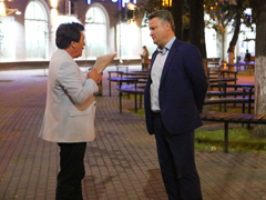 Глава Воронежа Вадим Кстенин провел совещание с директором МКП «Воронежгорсвет» Виктором Неугомоновым, в рамках которого проинспектировал ход работы по монтажу элементов праздничной иллюминации.