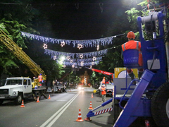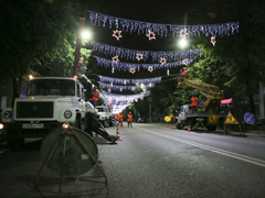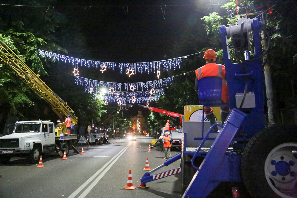 – Мы никогда раньше не сталкивались со столь сложной задачей. Нам нужно установить 2366 элементов иллюминации. Чтобы обеспечить эту систему электроэнергией, нам необходимо проложить 43 километра питающей сети, одних гирлянд мы повесим 22 километра, – поделился директор муниципального предприятия. – У нас, конечно, возникают серьезные сложности: работать приходится исключительно по ночам, чтобы не парализовать движение автотранспорта на оживленных улицах, плюс мешают припаркованные машины. Но мы надеемся успеть.