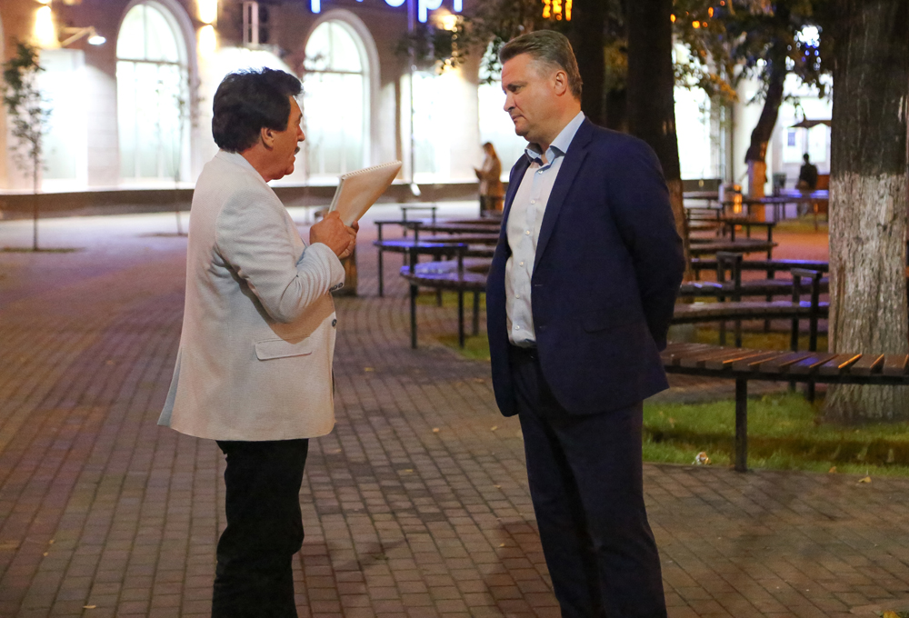 Мэр Вадим Кстенин высоко оценил результаты работы на площади Черняховского и улице Мира, отметив, что ко Дню города конструкции должен приобрести законченный вид – все гирлянды должны быть натянуты по одному уровню и выровнены. Кстати, в этих гирляндах в общей сложности 3,6 тысячи лампочек.