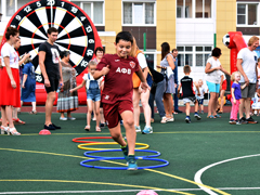 Настоящий восторг у детворы вызвали огромные надувные красочные конструкции «Дартс» и «Футбольные ворота». Каждый игрок старался быть самым метким. И многим это удалось.