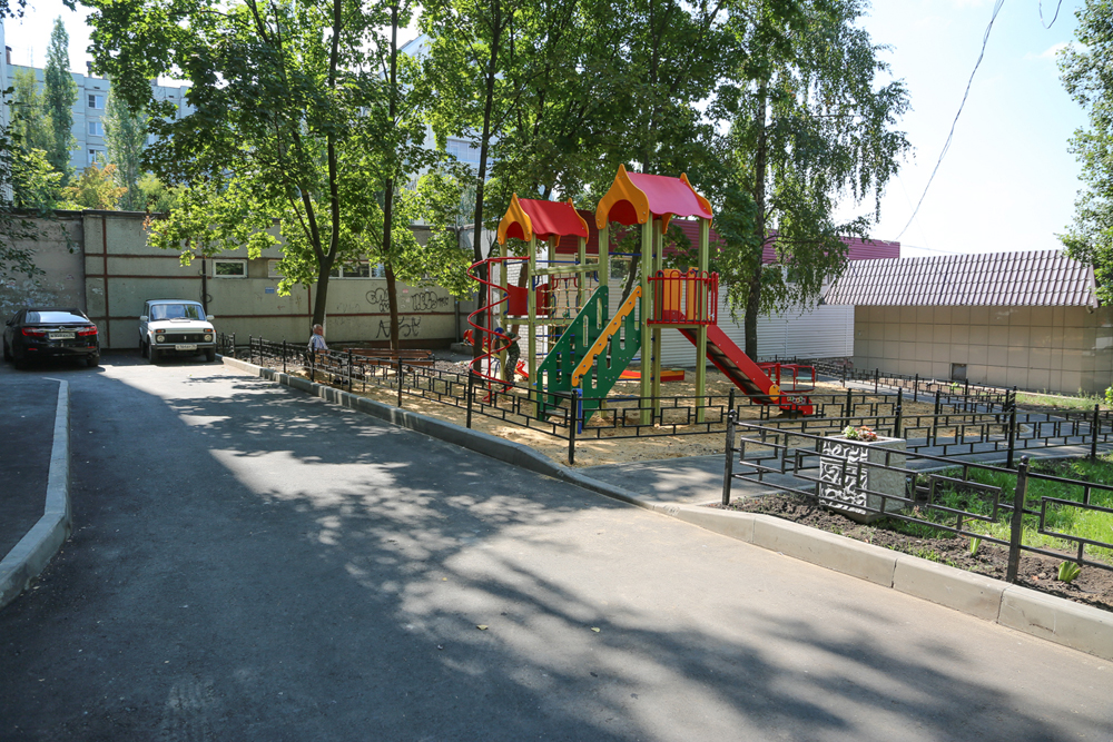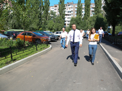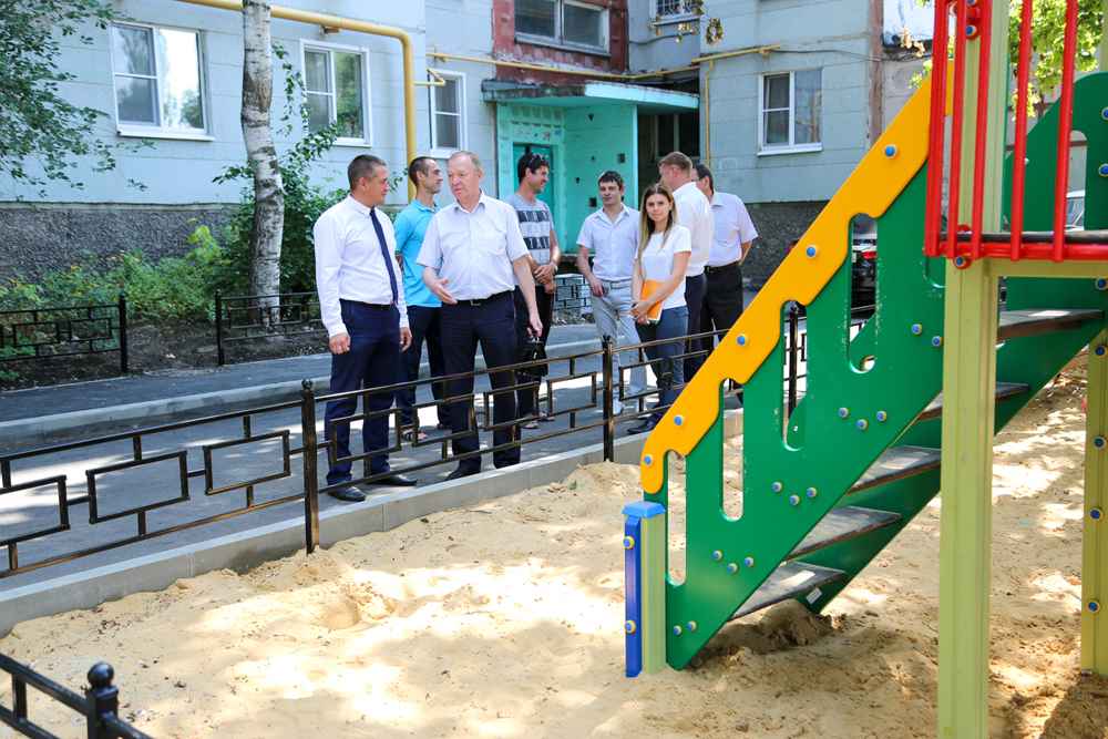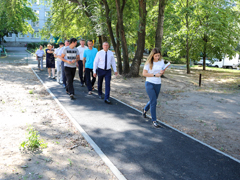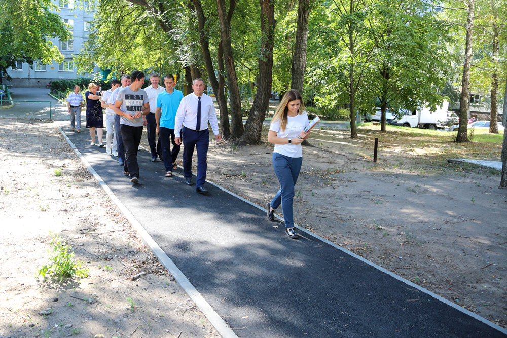 Комиссией приняты первые четыре дворовые территории, где был выполнен комплекс работ по ремонту асфальтобетонного покрытия проезжей части, тротуаров, установлены элементы детского и спортивного оборудования, ограждения, скамейки, урны.