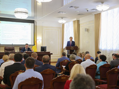 Далее руководитель управления стратегического планирования и программ развития Андрей Жаглин рассказал об итогах реализации муниципальных программ городского округа город Воронеж за I полугодие 2019 года.