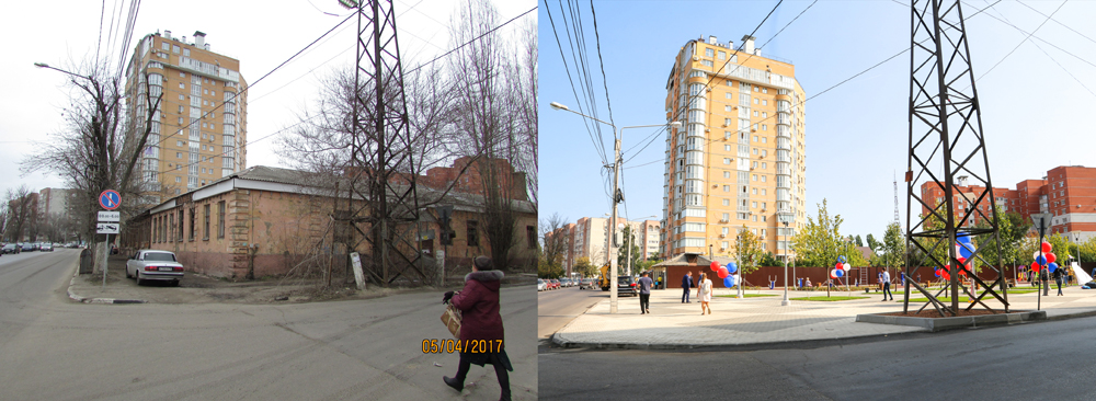 Зона отдыха расположена по адресу ул. Краснознаменная, 33. Чуть больше года назад здесь находилось аварийное здание вечерней школы, подлежавшее сносу. Жители района выступили с инициативой на месте старой постройки организовать территорию сквера.