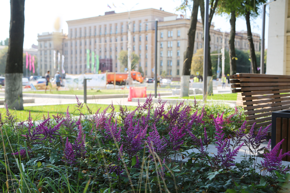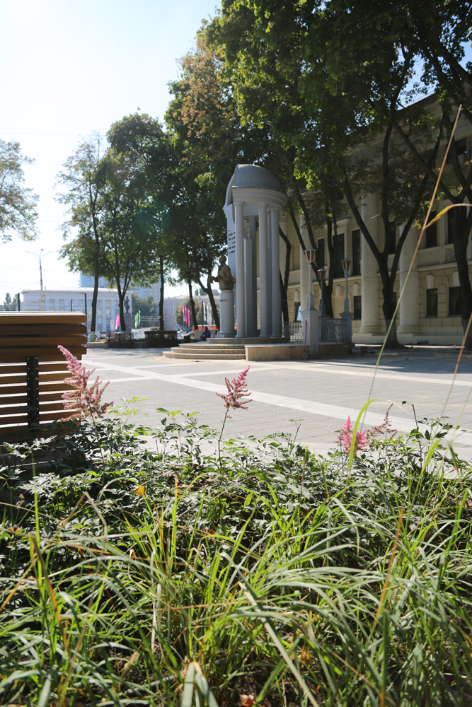- Сочетание плитки с гранитом в строгой линейной геометрии – это отсыл к классическому благоустройству по примеру Санкт-Петербурга. Мы объединяем пространство вокруг площади Ленина и соподчиняем в единый ансамбль. Площадь Ленина имеет свою геометрию мощения, теперь она есть и в сквере Пушкина,- рассказал Константин Кузнецов.