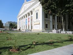 Кстати, по предложению, которое поступило к архитекторам и проектировщикам от дендролога Николая Парыгина, перед главным фасадом Театра оперы и балета малые архитектурные формы выполнены в форме банкеток (лавочек без спинок). Это позволит не мешать визуальному восприятию фасада здания.