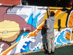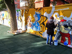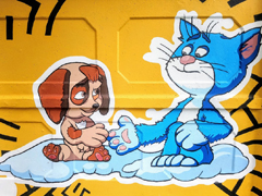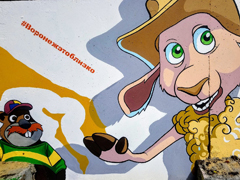 Яркое граффити по мотивам мультика «Котенок с улицы Лизюкова-2» от студии «Wizart Animation» появилось на некогда сером бетонном заборе в сквере Никитинский на одноименной улице. Мультяшное граффити лаконично вписалось в тематику детской площадки и, судя по многочисленным отзывам жителей, оно понравилось и детям и взрослым.