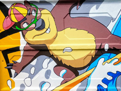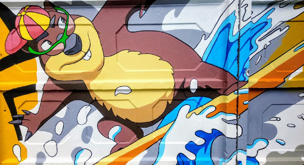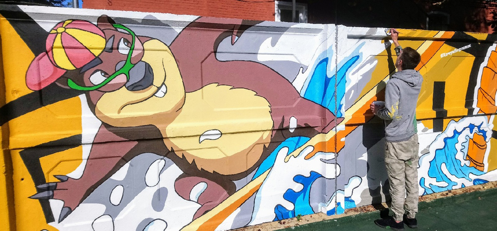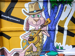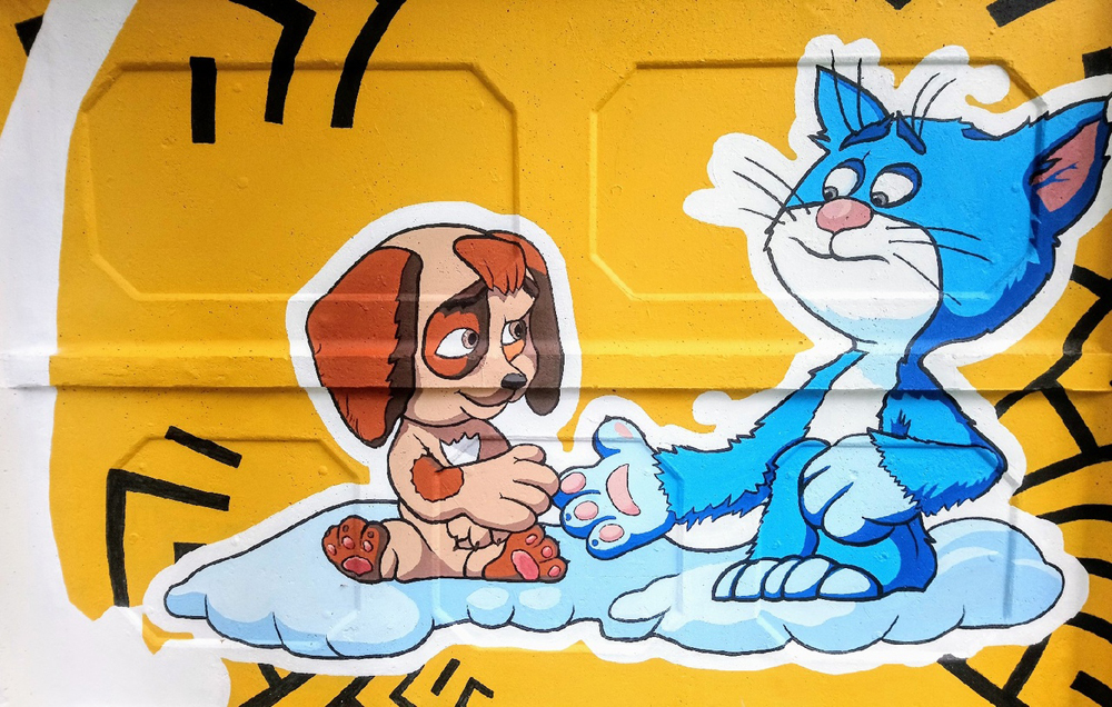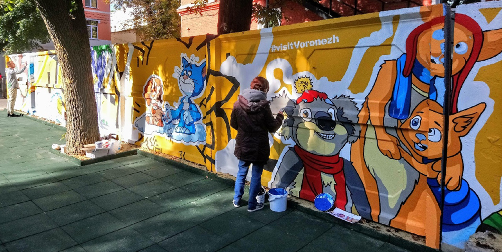 Яркое граффити по мотивам мультика «Котенок с улицы Лизюкова-2» от студии «Wizart Animation» появилось на некогда сером бетонном заборе в сквере Никитинский на одноименной улице. Мультяшное граффити лаконично вписалось в тематику детской площадки и, судя по многочисленным отзывам жителей, оно понравилось и детям и взрослым.