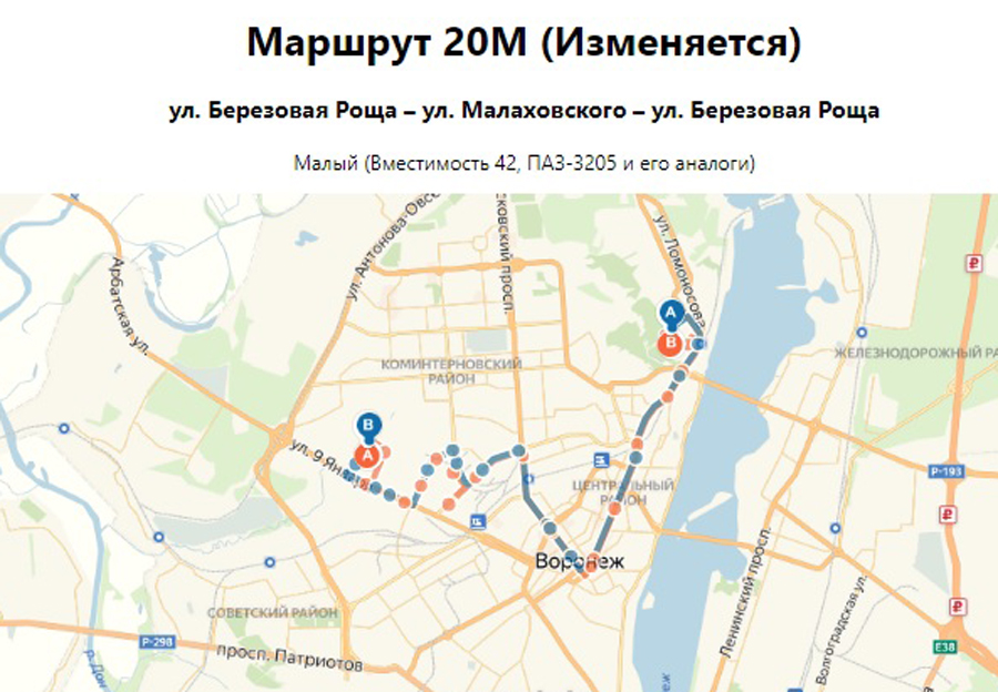 Для горожан разработана интерактивная карта проекта новой маршрутной сети Воронежа
